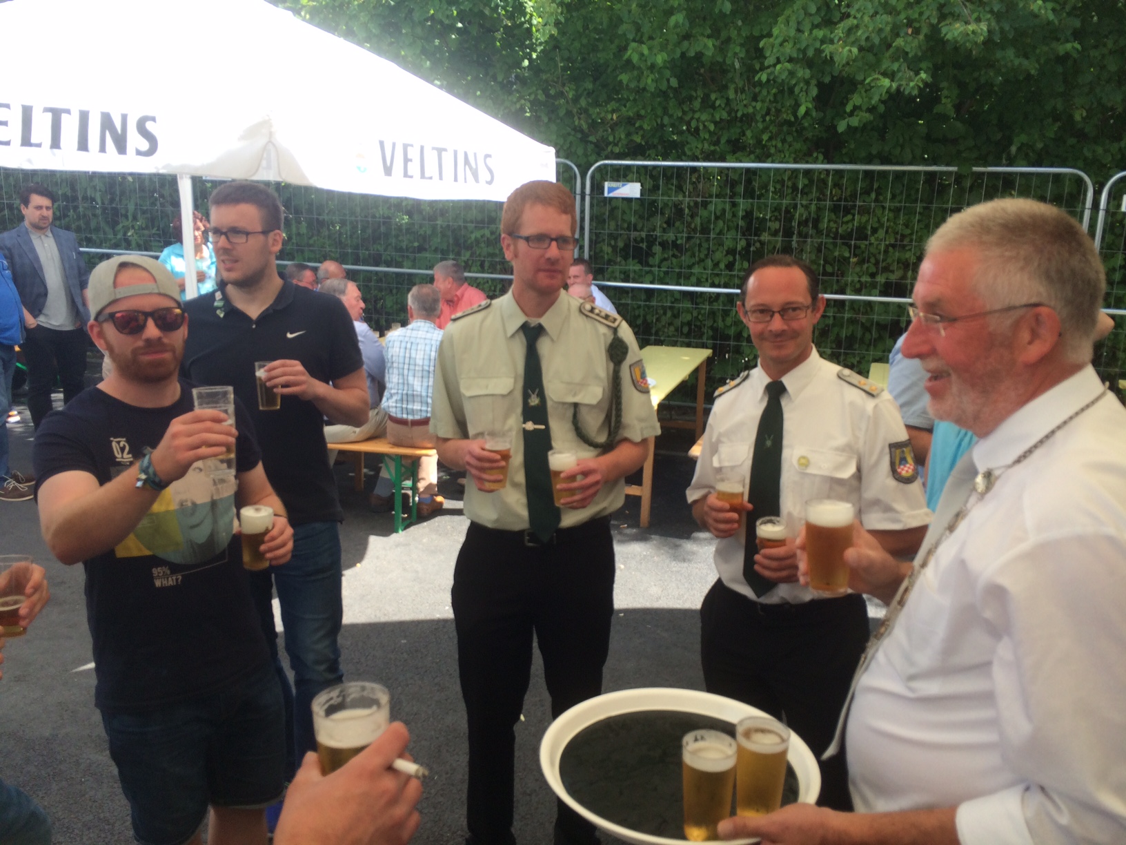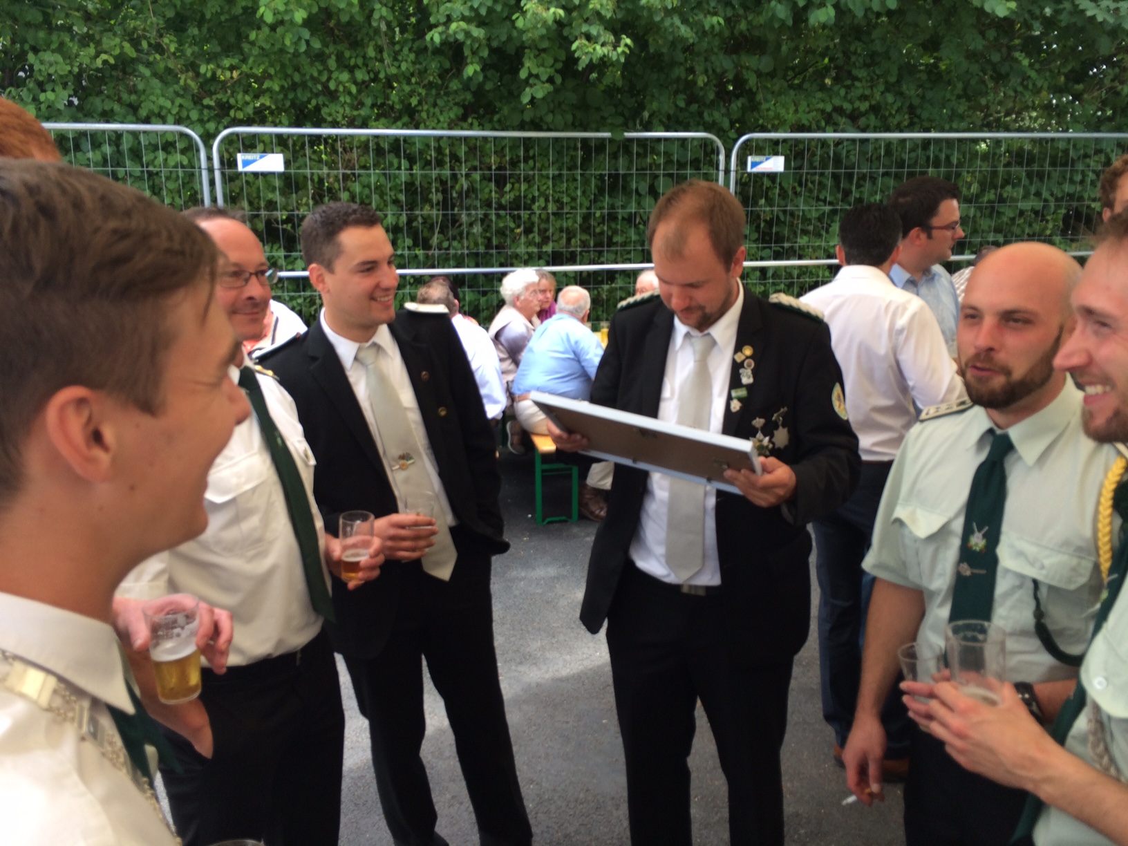 Alex zeigte sich sichtlich erfreut über die kleine Aufmerksamkeit, er gibt das Amt nun an Georg Becheim weiter, mit dem wir schon in der Vergangenheit viele lustige Stunden verleben durften. Auch König Uli Thiele freute sich über die Anwesenheit der Westicker Avantgardisten. Dass man in Wickede auf Gastfreundschaft zählen darf erlebten die Avantgardisten in der Mittagspause, die auf der Terrasse von Familie Koch verbracht wurde. An dieser Stelle noch einmal ein ganz herzliches Dankeschön für die nette Bewirtung.